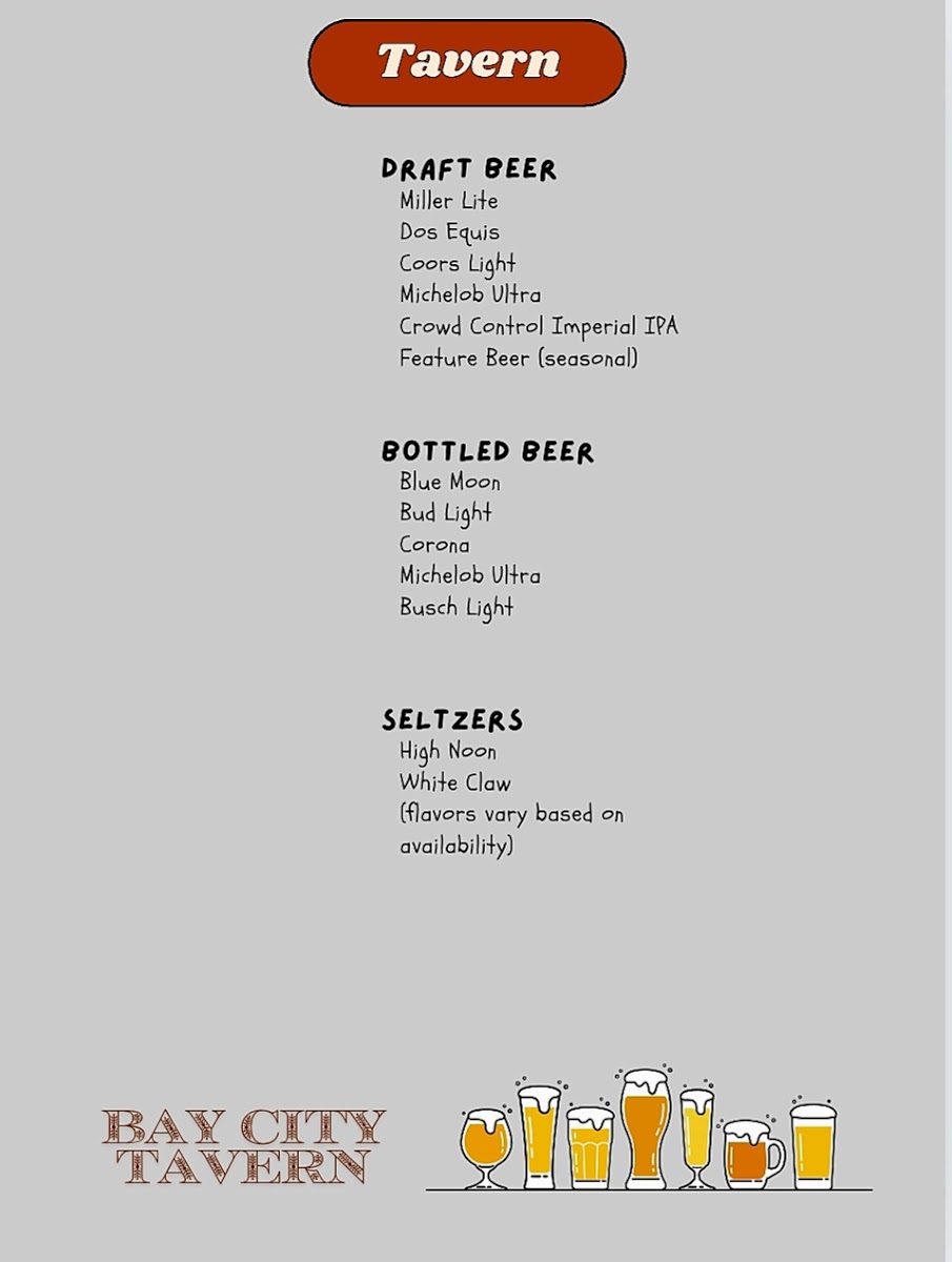 To wash it all down, choose from a variety of drinks, including sodas like Pepsi and Mountain Dew, or opt for a cold Draft Beer like Miller Lite or Dos Equis. For something lighter, White Claw or High Noon seltzers are available.